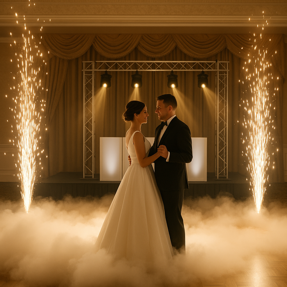 Vier bis fünf Funkenmaschinen erzeugen einen funkelnden Rahmen aus Licht und Emotion – sicher, synchron und wunderschön.